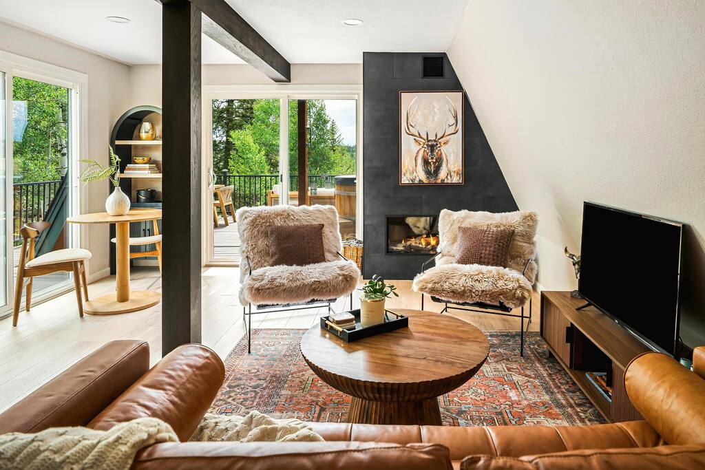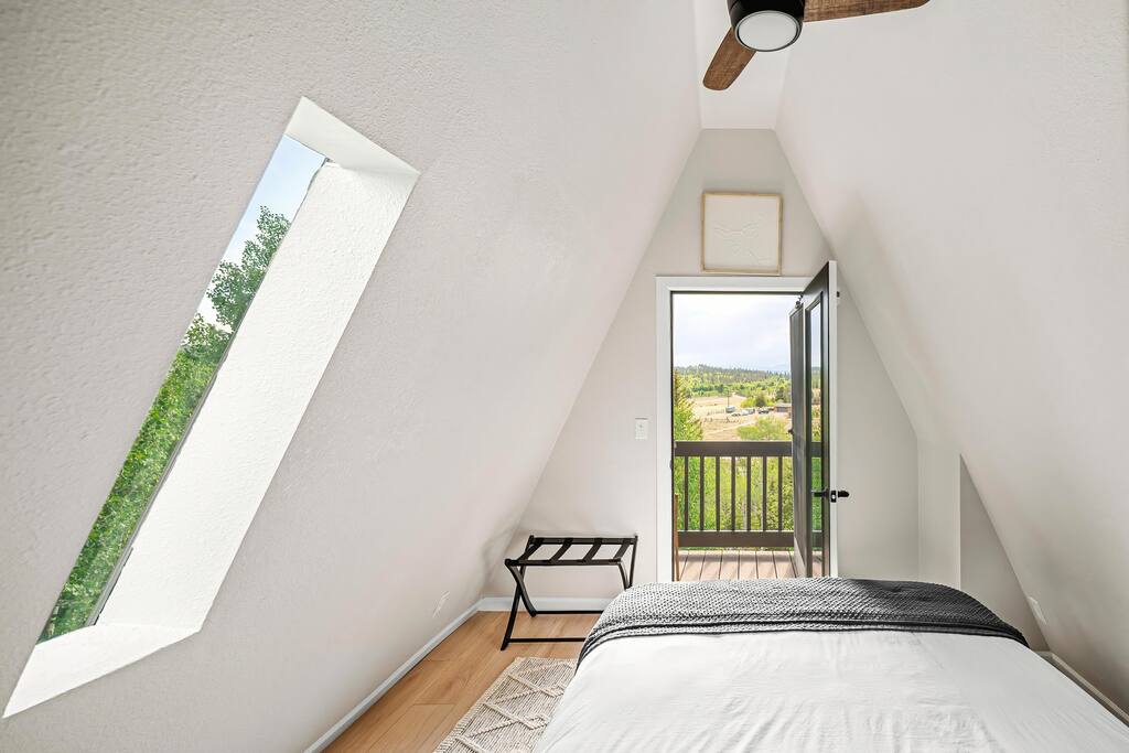 Looking for a mountain escape with a little charm and a lot of adventure? Welcome to your new favorite A-Frame hideaway in a quiet rural Colorado neighborhood...aka, the launchpad for all your hiking, biking, stargazing, and s’more-making dreams. Inside, follow the spiral staircase (yes, it’s as fun as it sounds) up to two bedrooms, one with a queen bed, the other with two twins. And if you must check emails in between adventures, a remote work station. Outside is where the magic really happens: soak in the cedar hot tub, sip wine around the gas fire pit, or gather for al fresco dinners while the sky puts on a sunset show you’ll never forget. Come for the fresh air, stay for the vibes.