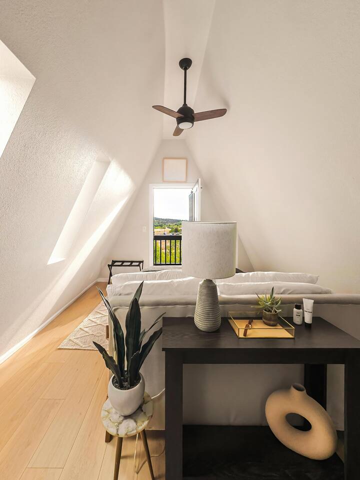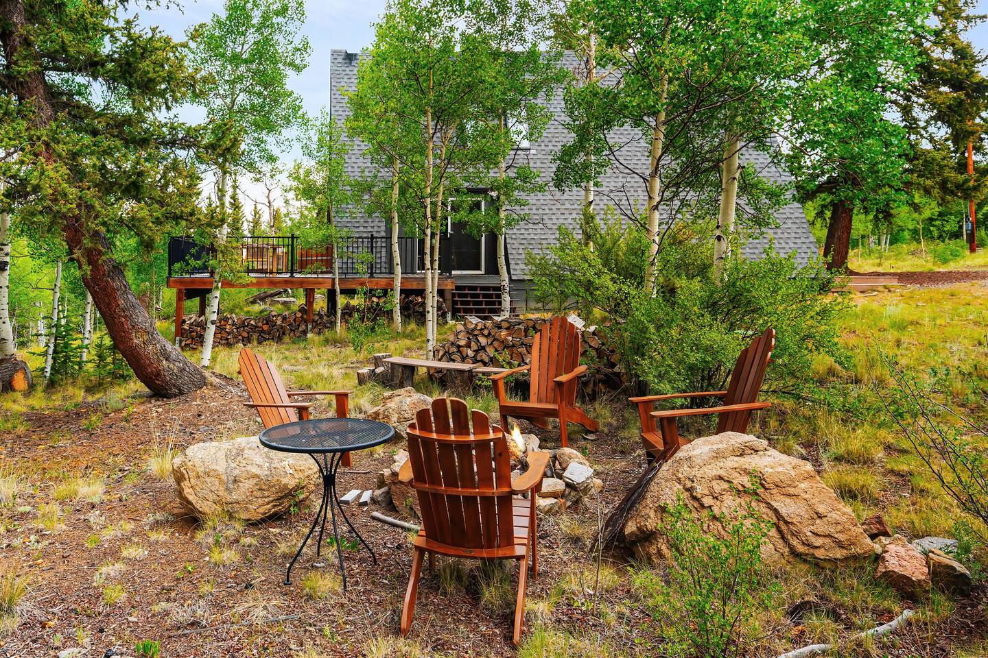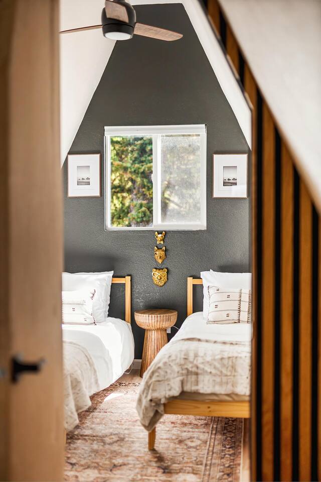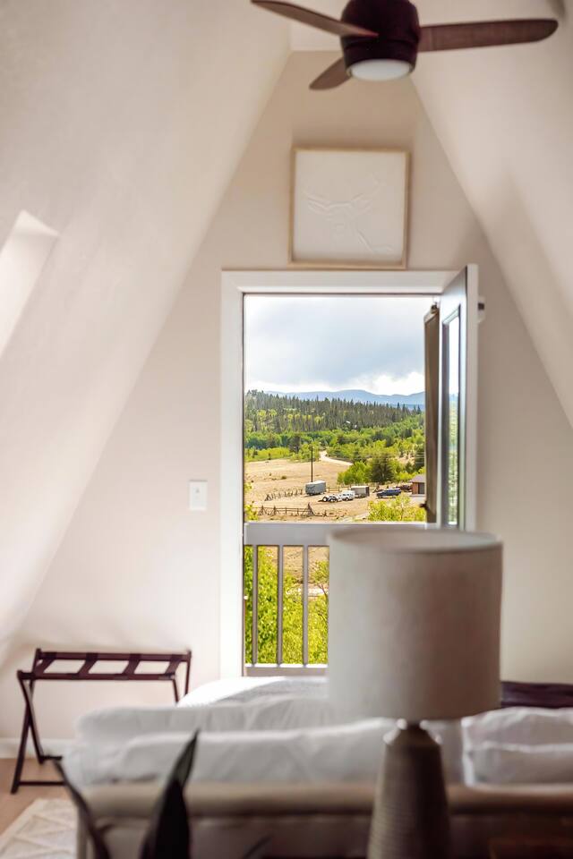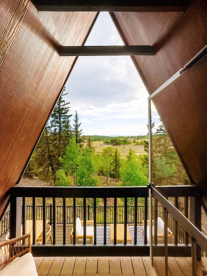 Looking for a mountain escape with a little charm and a lot of adventure? Welcome to your new favorite A-Frame hideaway in a quiet rural Colorado neighborhood...aka, the launchpad for all your hiking, biking, stargazing, and s’more-making dreams. Inside, follow the spiral staircase (yes, it’s as fun as it sounds) up to two bedrooms, one with a queen bed, the other with two twins. And if you must check emails in between adventures, a remote work station. Outside is where the magic really happens: soak in the cedar hot tub, sip wine around the gas fire pit, or gather for al fresco dinners while the sky puts on a sunset show you’ll never forget. Come for the fresh air, stay for the vibes.