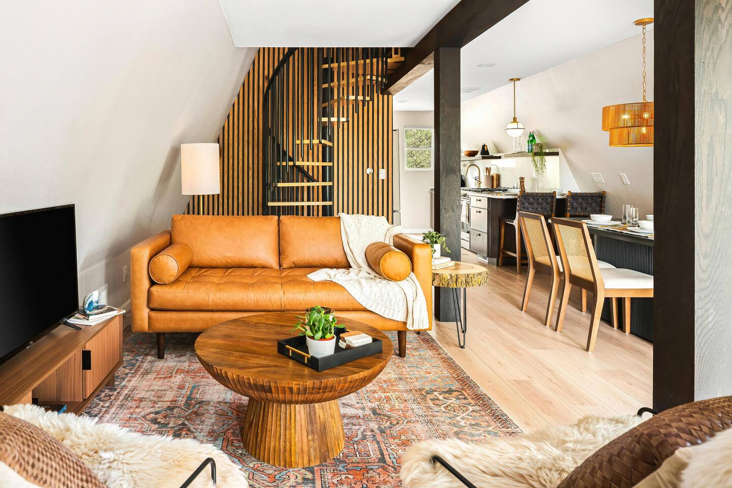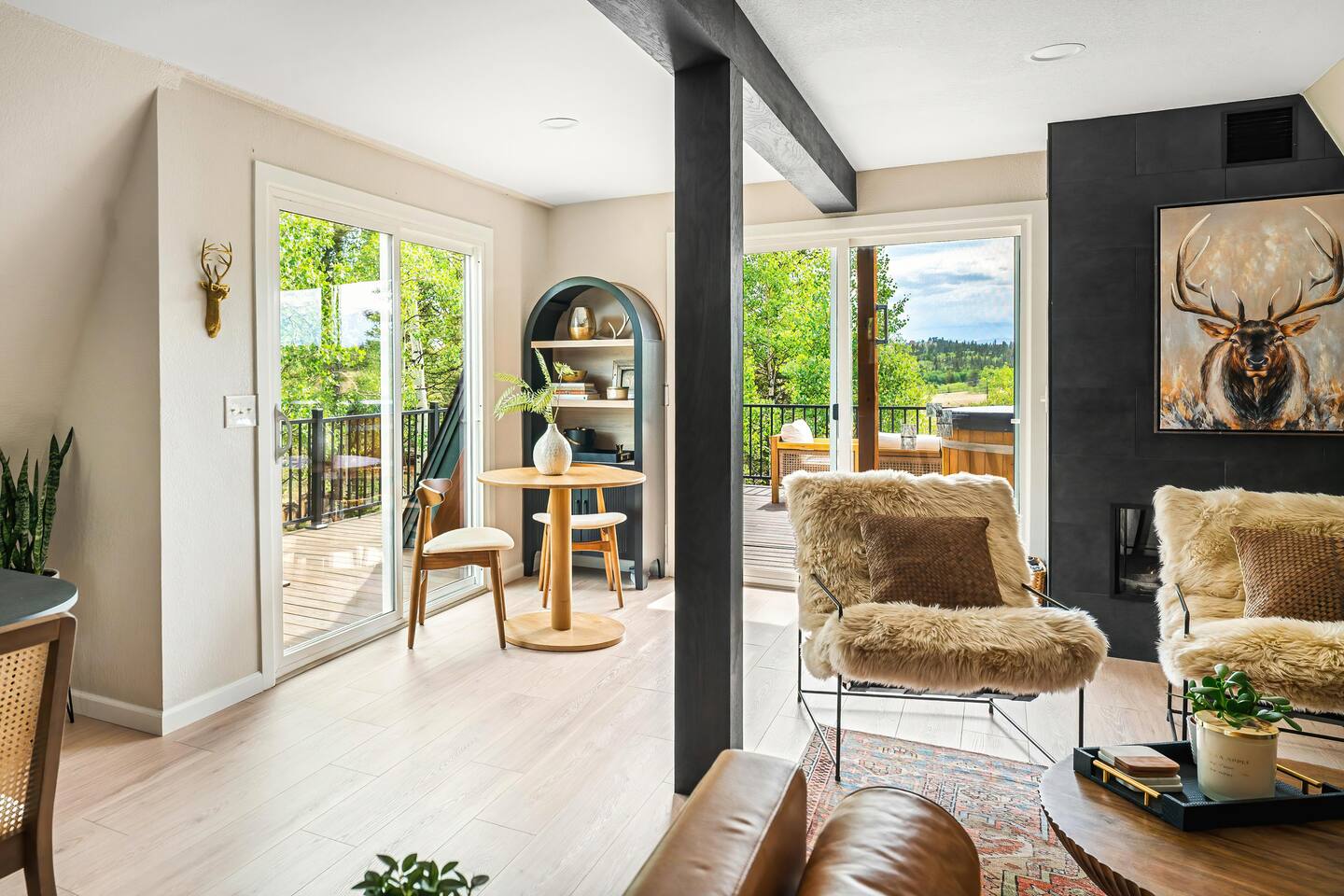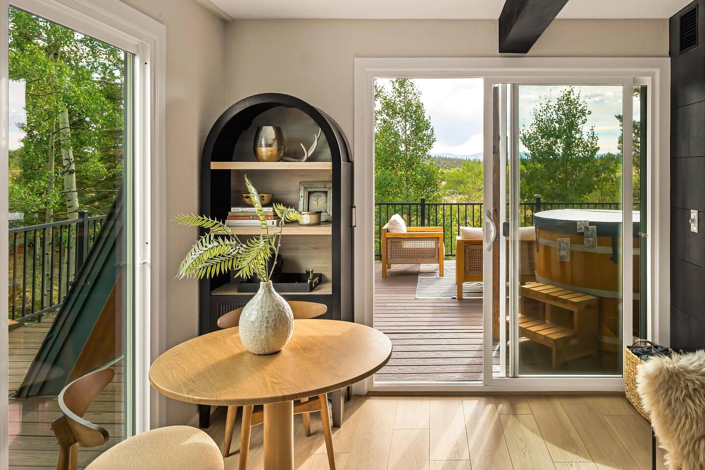 Looking for a mountain escape with a little charm and a lot of adventure? Welcome to your new favorite A-Frame hideaway in a quiet rural Colorado neighborhood...aka, the launchpad for all your hiking, biking, stargazing, and s’more-making dreams. Inside, follow the spiral staircase (yes, it’s as fun as it sounds) up to two bedrooms, one with a queen bed, the other with two twins. And if you must check emails in between adventures, a remote work station. Outside is where the magic really happens: soak in the cedar hot tub, sip wine around the gas fire pit, or gather for al fresco dinners while the sky puts on a sunset show you’ll never forget. Come for the fresh air, stay for the vibes.