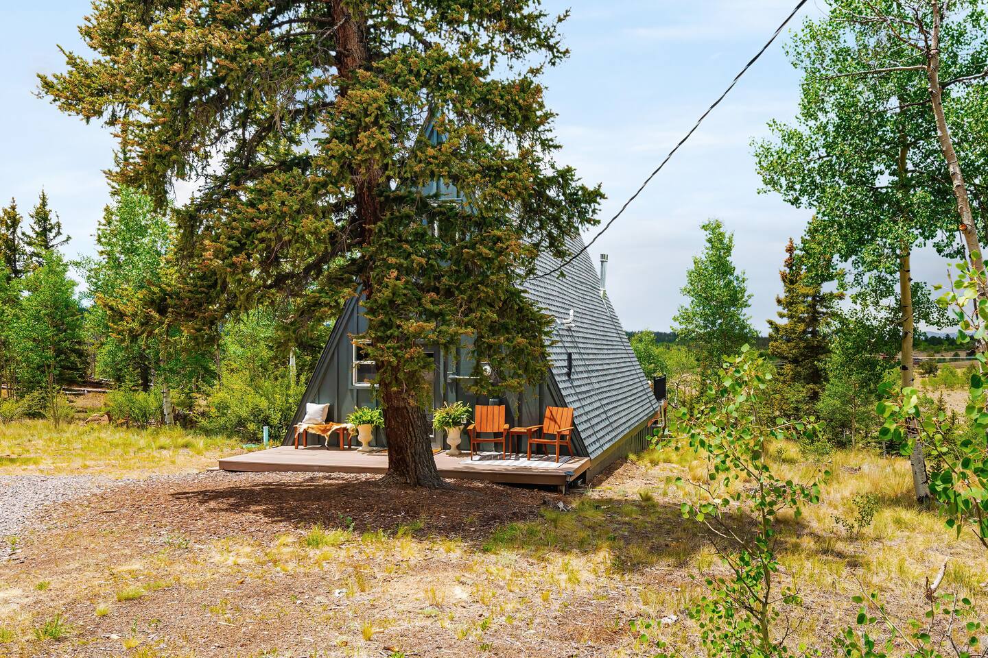 Located near Jefferson, CO, you’re just minutes from Tarryall Reservoir, Kenosha Pass, and trailheads along the Colorado Trail. Tucked away on 2 serene acres surrounded by aspen trees, this newly renovated A-frame cabin near Tarryall Reservoir and Kenosha Pass is your launchpad for outdoor adventure. Whether you're here to hike the Colorado Trail, fish, bike, or simply unwind beneath starry skies, this stylish mountain retreat offers it all. You've found your perfect Colorado basecamp.